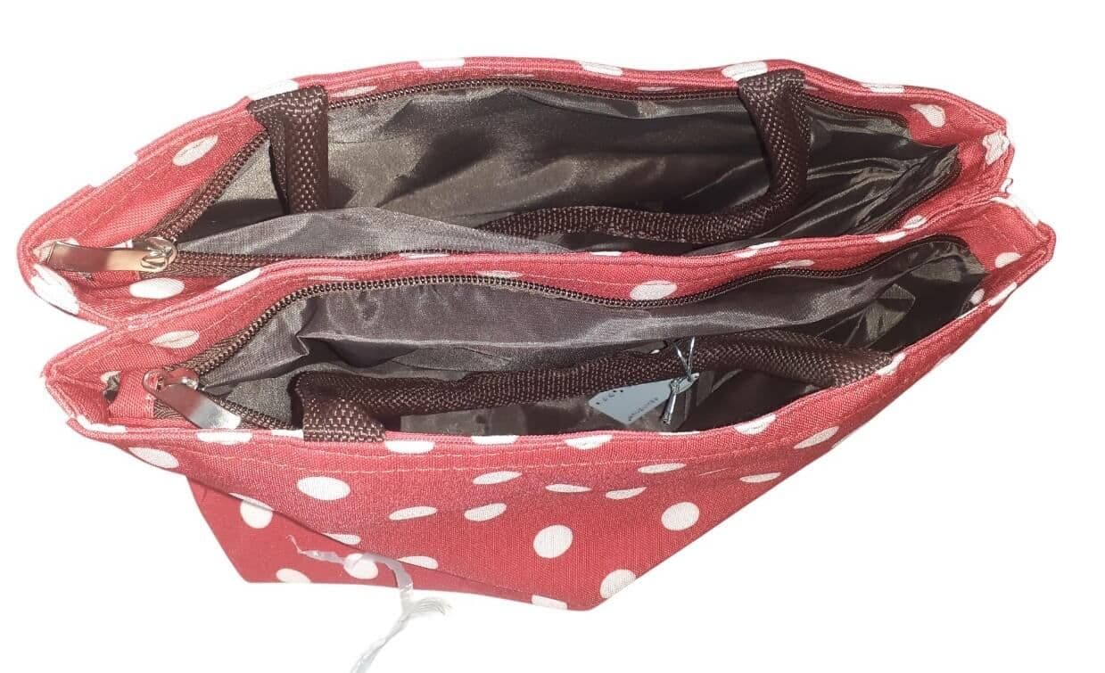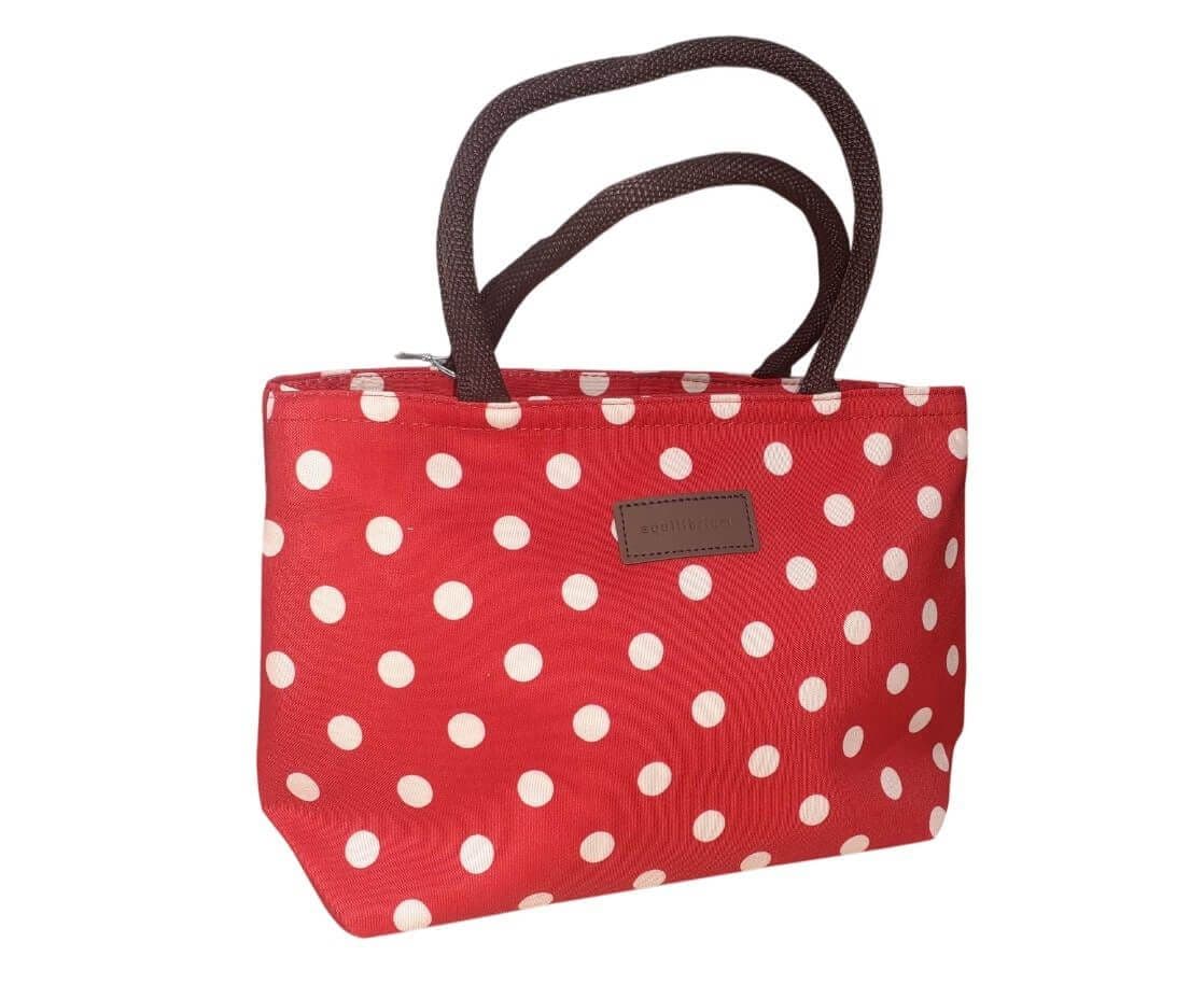 Part of the popular Equilibrium range, this handbag combines contemporary style with reliable durability. The playful spots pattern in vibrant red and cream adds a cheerful touch to any outfit, making it suitable for both casual outings and more formal occasions. The sturdy handles ensure comfortable carrying, whether you’re heading to work, shopping, or meeting friends for coffee.