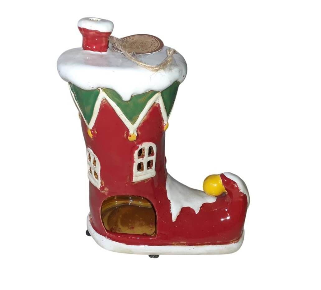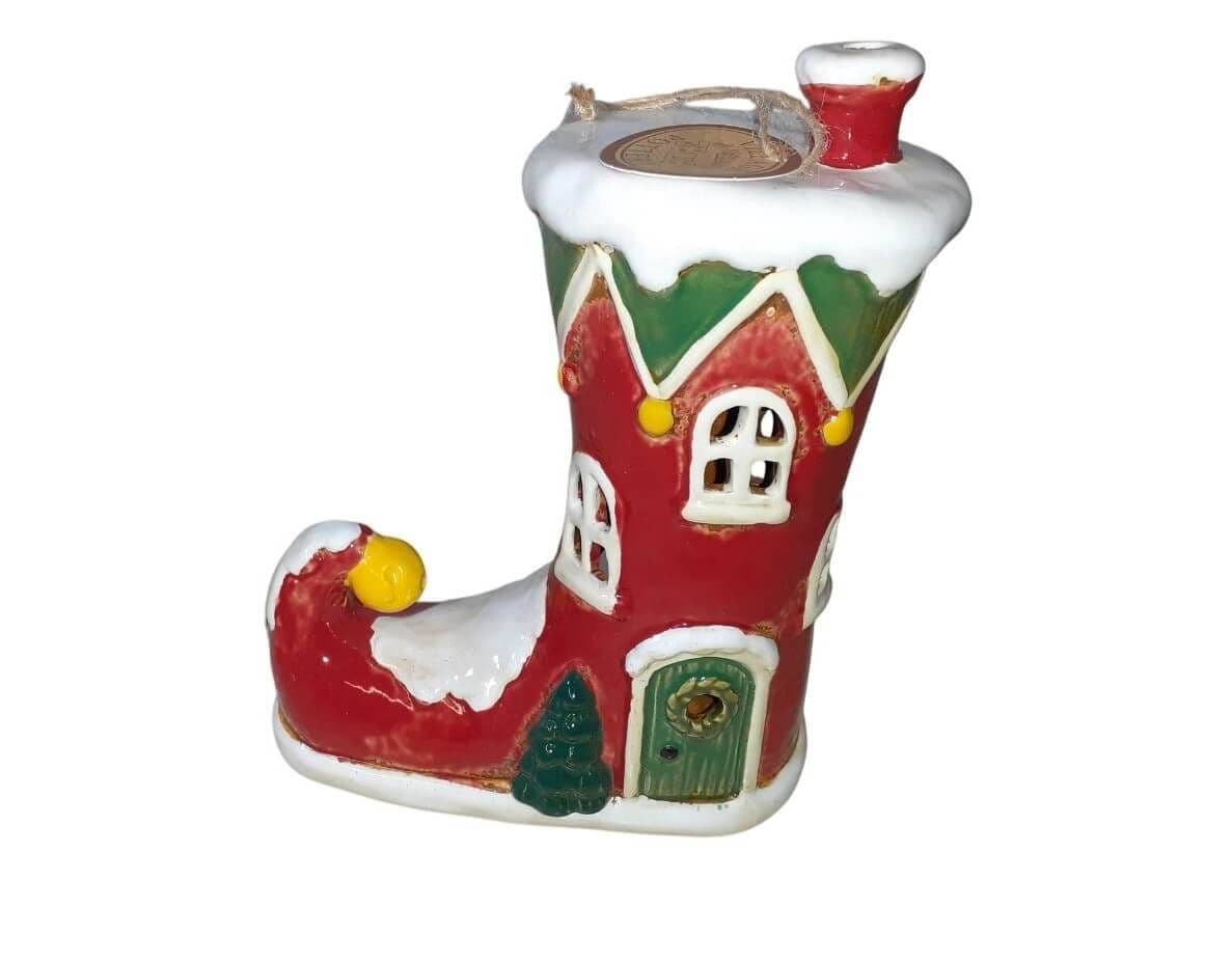 "Light up your home this holiday season with our charming Village Pottery Xmas Elf Boot House Tealight! This elf-sized boot is perfect for adding a touch of whimsy to any room and is sure to bring a smile to your face. Whether you're a fan of pottery or just looking for a unique decoration, this tealight house is a must-have. Plus, it's the perfect size for an elf to hide in, just in case you catch one trying to sneak a peek at your presents. So why settle for a boring old candle when you can have a festive and funny Elf Boot House Tealight? Get yours today and spread the joy of the season in a hilariously fun way!"